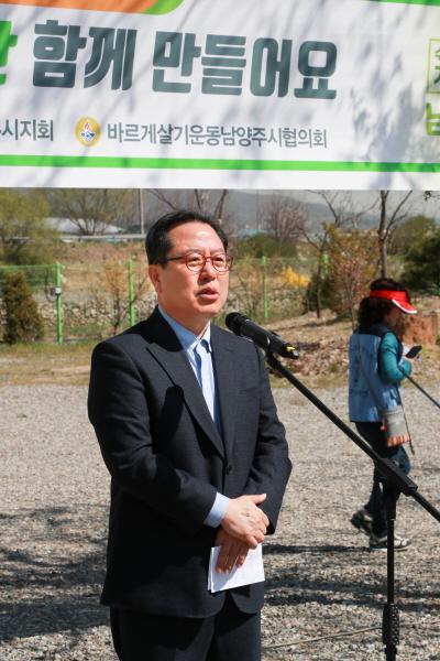 조광한 시장은 “우리시의 소중한 자산인 하천을 70만 남양주 시민의 품으로 되돌려주기 위한 정비활동을 위해 오늘 이 자리에 모이신 3대 국민운동단체 회원 여러분께 감사드리며, 하천정비 행사가 단발성 이벤트로 끝나지 않도록 공직자와 각 사회단체, 시민 모두가 협력해 연중 항상 쾌적한 하천정원으로 가꾸어 나가는 노력을 계속해야 한다.”고 강조했다.