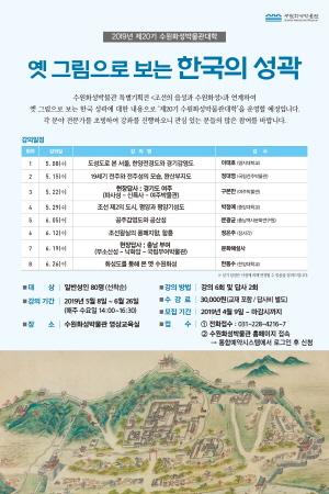 이번 강좌는 개관 10주년을 맞은 수원화성박물관 특별기획전시 ‘조선의 읍성과 수원화성’과 연계해 ‘옛 그림으로 보는 한국의 성곽’을 주제로 진행한다. 다음 달 8일부터 6월 26일까지 매주 수요일 총 8회 과정이다.