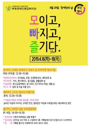 부평장애인종합복지관은 ‘제39회 장애인의 날’을 맞아 지난 16일부터 18일까지 3일간 복지관에서 ‘장애인 문화의 날’ 행사를 개최했다.