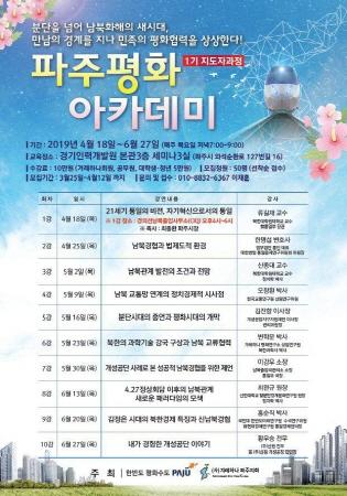 이번 아카데미는 급변하는 남북관계에 대한 이해 증진과 평화통일에 대한 공감대 형성을 위해 마련됐다. 파주시에서 최초로 시행되는 ‘파주평화아카데미’ 교육은 총 10강으로 진행되며 4.27판문점 회담 1주년을 맞아 국내 최고의 통일 전문가들의 강의가 이어진다.