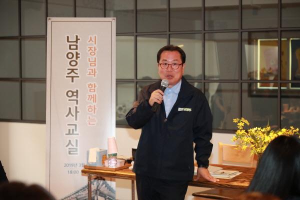조광한시장은 지난 17일 저녁 삼패동 한 카페 2층에서 ‘시장님과 함께하는 남양주 역사교실’을 열었다.
