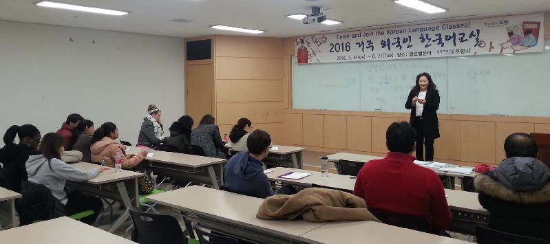 포항시가 지난8일 시청 글로벌센터에서 영어권 외국인을 대상으로 한국어 실력 향상 및 지역사회 적응을 통한 포항시민과의 화합을 돕기 위해 마련한 상반기 외국인 ‘한국어교실’을 개강했다. 시는 결혼이민자와 근로자들을 위해 다문화가족 지원센터와 외국인근로자 상담센터를 운영하고 있지만 이들의 사회적응과 편의를 지원하는 기관·단체와 프로그램은 부족한 실정이다. 특히 유학생이나 학원 강사 등 지역에 단기간 거주하는 영어권 외국인들을 위한 프로그램이 부족해 포항에서의 기억을 한국의 이미지로 평생 가져갈 수 있는 이들을 위해 2011년부터 무료 ‘한국어교실’을 개설했고 현재까지 350여명의 외국인이 수강했다. 지난 2월 포항시 홈페이지를 통해 수강생을 모집한 결과 59명이 신청했으며 신청자 대부분이 학원 및 공립학교 영어교사로, 체류기간이 1개월에서 2년 정도인 미국, 캐나다, 영국 등에서 온 영어권 외국인이다. 이번 상반기 교육은 6월 21일까지 초급과정 2개 반과 중급과정 2개 반으로 나눠 시청 글로벌센터 내 강의실에서 주1회 수업으로 운영된다. 편장섭 국제협력관광과장은 “한국어교실 운영으로 관내 거주하고 있는 영어권 외국인들이 한글의 기초를 잘 습득해 일상생활에 필요한 의사소통에 도움이 되길 바란다”며 “체류기간 동안 포항의 관광지 방문과 문화체험을 통해 포항의 민간 홍보대사로서의 역할을 기대한다”고 말했다.// 심후보 기자 sky626201@naver.com