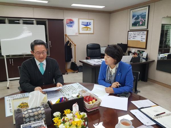 경기도의회 경제과학기술위원회 원미정 의원이 지난 18일 독립유공자 생업지원을 위한 방안 마련을 촉구하고자 김희겸 경기도 1부지사와 면담을 가졌다.