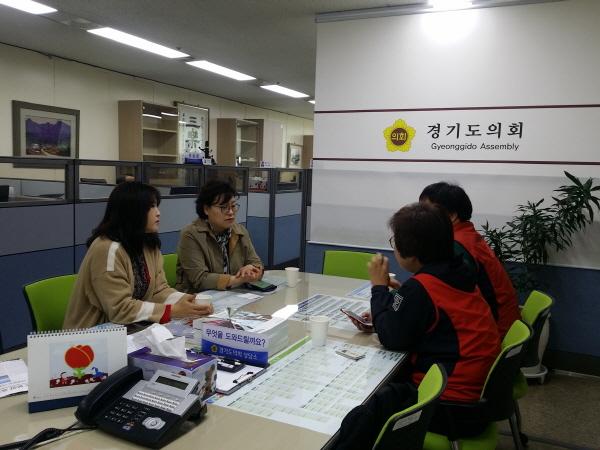 경기도의회 이진연 의원은 지난 17일 경기도의회 부천상담소에서 전국요양서비스 노동조합 경기지부장,부천시지회장외 관계자와 함께 요양서비스 노동자들을 위한 처우개선 및 근로환경 애로사항과 관련해 논의했다.