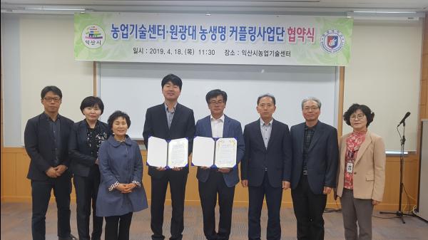 익산시농업기술센터는 18일 농업인교육관에서 원광대학교 농업생명과학 커플링사업단과 상생발전을 위한 업무 협약을 체결했다.