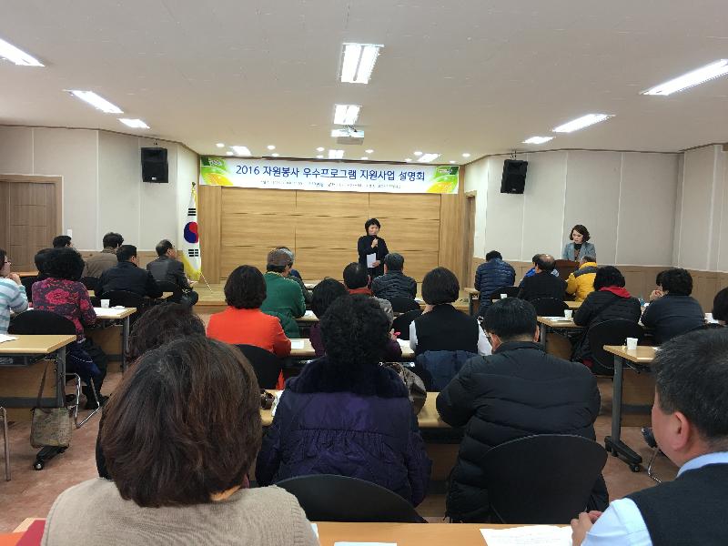 포항시자원봉사센터(소장 권경옥)는 3월 9일(수) 약 40여개의 동아리 회장 및 회원 50여명이 참석한 가운에 포항시자원봉사센터 2층 교육장에서 “2016 자원봉사 우수프로그램 지원사업 설명회”를 개최하였다.