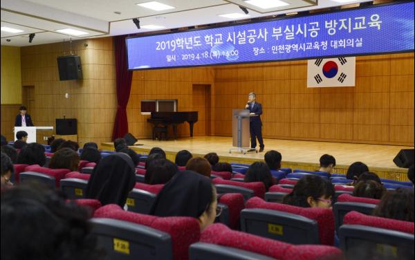 인천광역시교육청은 18일 교육종합 정보센터 대회의실에서 ‘2019년도 학교 시설공사 부실시공 방지 교육’을 실시했다.