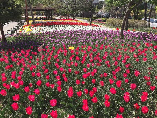 강릉시에서 다채로운 녹지 경관을 형성하고자 작년 가을 식재한 튤립, 히야신스, 무스카리 등 화초류 27종 10만본이 본격적으로 개화하기 시작했다.