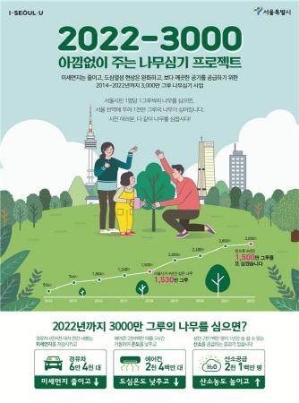 서울시는 민선6기인 2014년부터 2018년까지 이미 1,530만 그루의 나무를 심었으며, 민선7기인 2019년부터 2022년까지는 4,800억원의 예산을 투입해 추가로 1,500만 그루의 나무를 심음으로써 민선7기가 끝나는 2022년까지 총 3,000만 그루의 나무를 심을 계획이다.