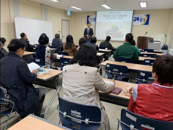 도내 농산물 가공 농업 경영체 소속 직원 30여 명이 참여한 가운데 연 이번 교육은 소비자들이 안심하고 먹을 수 있는 식품 제조 국제식품규격위원회에서 정한 ‘7원칙 12절차’ 등에 대한 강의를 진행했다.