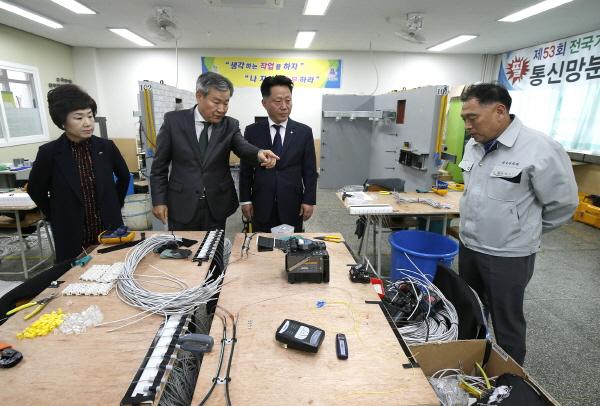 먼저 지난해에 이어 2년 연속 경기도기능경기대회에서 종합우승을 한 부천공업고등학교를 찾아가 학생들을 격려하고 기술 숙련 실습장소 곳곳을 둘러봤다.