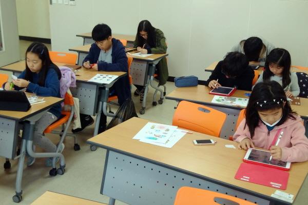 부천시는 학생들을 대상으로 아이패드를 활용한 웹툰 제작 실습 교육을 운영한다.