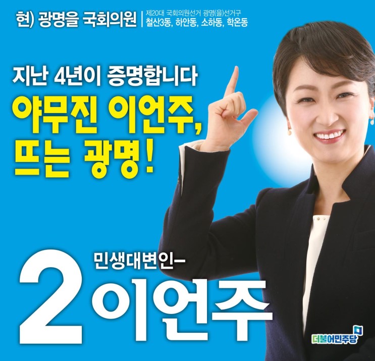 더불어민주당은 경기 광명(을)에 현재 지역구 국회의원인 이언주 예비후보를 단수 공천자로 확정했다고 발표했다.
