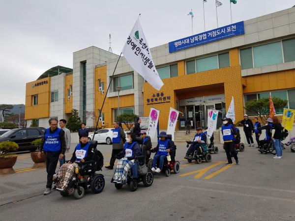 포천나눔의집 장애인자립생활센터, 포천장애인자립생활센터, 사)새누리장애인부모연대 포천시지부 등 8개 단체가 주축이 된 포천시 420장애인권익옹호연대는 도보행진을 하며 장애인 이동권 보장, 활동지원권리 보장, 자립생활 지원 등을 요구했다.