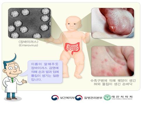수족구병은 콕사키바이러스나 엔테로바이러스 감염에 의해 발열 및 입 안의 물집과 궤양, 손과 발의 수포성 발진을 특징으로 하는 질환으로 특히 영유아에서 많이 발생하며, 감염된 사람의 호흡기 분비물 또는 대변 등을 통해 다른 사람에게 전파된다.
