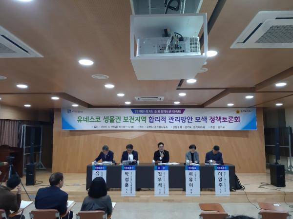 이날 열린 ‘유네스코 생물권 보전지역 합리적 관리방안 모색 정책 토론회’는 직접민주주의 강화 및 현장 여론 수렴을 위해 올해부터 경기도와 경기도의회가 공동으로 주최하는 ‘2019년 경기도 춘계 정책토론 대축제’의 일환으로 진행됐다.