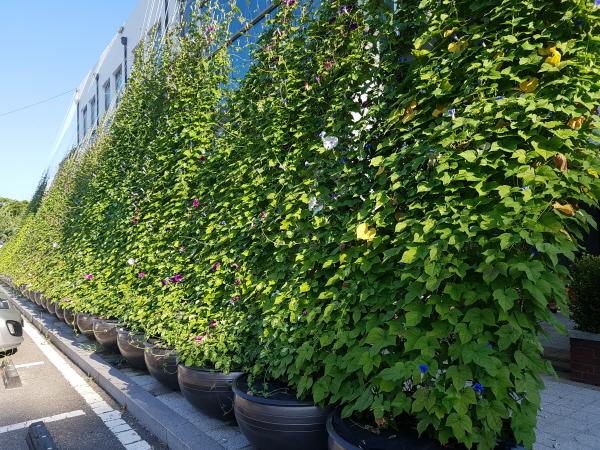 수원시는 지난해 시청, 구청, 동행정복지센터, 공원녹지사업소, 관내 학교 등 29개소에 그린커튼을 설치했다. 올해는 설치 건물을 51개소로 늘릴 계획이다.