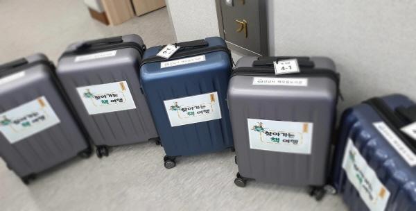 원하는 날짜와 시간에 해오름도서관 직원들이 책을 캐리어에 담아 집으로 배달해 주며, 한 달간의 대여 기간이 끝나면 다시 가지러 간다.