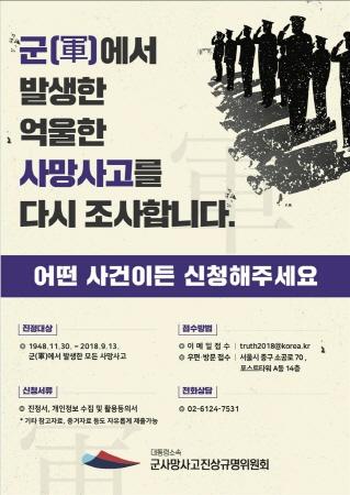 ‘대통령소속 군사망사고진상규명위원회’는 지난해 9월 특별법에 따라 설립됐다. 군대에서 발생한 억울한 사망사고를 대상으로 유가족분들과 목격자 등의 진정을 받아 공정하고 객관적인 조사로 진실을 규명하는 업무를 수행하며, 이를 통해 유가족분들이 명예를 회복하고, 합당한 예우를 받을 수 있도록 노력하고 있다.