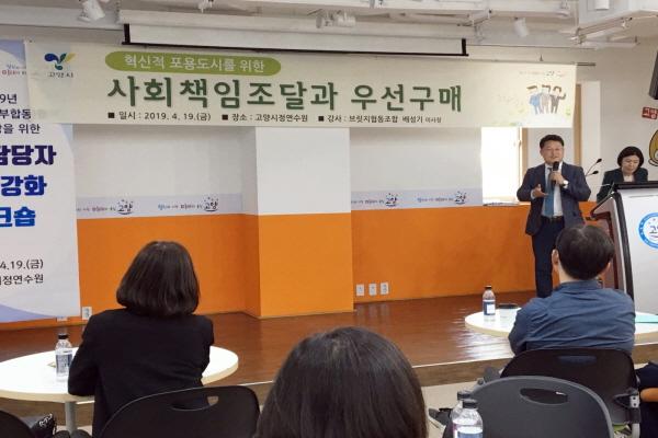 고양시는 지난 19일 고양시정연수원 가와지볍씨홀에서 시 회계 및 구매 담당 공무원을 대상으로 ‘2019년 사회적경제 공공기관 우선구매 교육’을 실시했다.