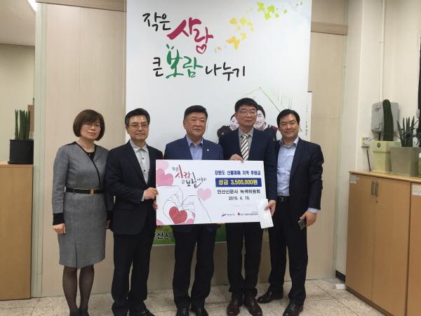 안산시는 안산신문사 녹색위원회가 산불 피해를 입은 강원도 주민들을 위해 성금 3백5십만원을 기탁했다고 22일 밝혔다.
