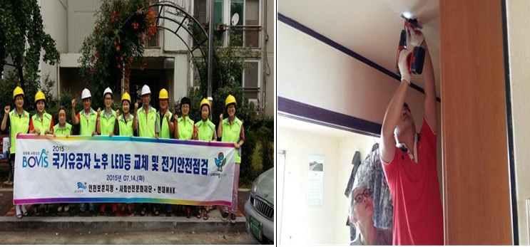 사회안전문화재단은 주거환경 개선, 제과제빵․밥차․벽화그리기 봉사 등 지역사회의 생활환경 개선과 어려운 이웃의 삶의 질 향상을 위하여 다양한 봉사활동을 펼치고 있는 순수 민간단체이고, 현대MNK는 광명에 소재한 전기, 조명기구제조업체로서 광명시에 거주하는 독거 및 저소득 국가유공자 어르신들의 가정에 노후된 형광등을 LED등으로 교체하고 장마철을 맞아 전기안전 점검 등의 수리행사를 함께 실시하게 되었다.