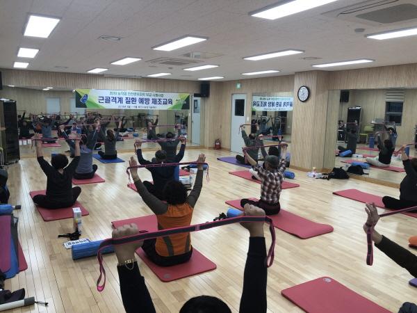 교육은 포곡·이동읍사무소에서 한달간 매주 2회 단체별로 별도 진행되는데 전문 강사가 짐볼, 폼롤러, 고리밴드와 같은 소도구를 이용해 신체 균형을 바로잡고 근육강화 방법을 교육하고 스트레칭을 돕는다.