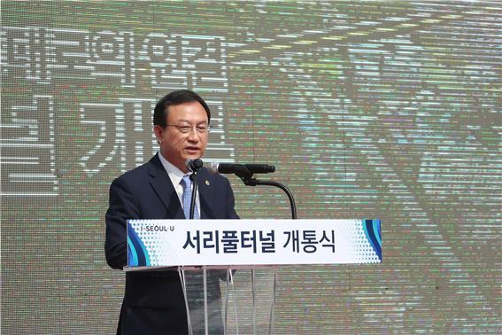 서울특별시의회 박기열 부의장이 지난 21일 오후 3시 방배동 황실자이아파트 앞 서리풀터널 입구에서 열린 서리풀터널 개통식에 참석해 축사를 전했다.