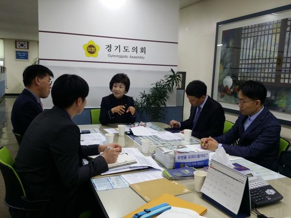 경기도의회 제1교육위원회 황진희의원은 지난 18일 경기도의회 부천상담소에서 경기도교육청 시설과 관계자들과 함께 학교 남자화장실 소변기 가림막설치 및 여성위생용품 수거함 설치 등 화장실 시설 현대화사업과 관련해 간담회를 개최했다.