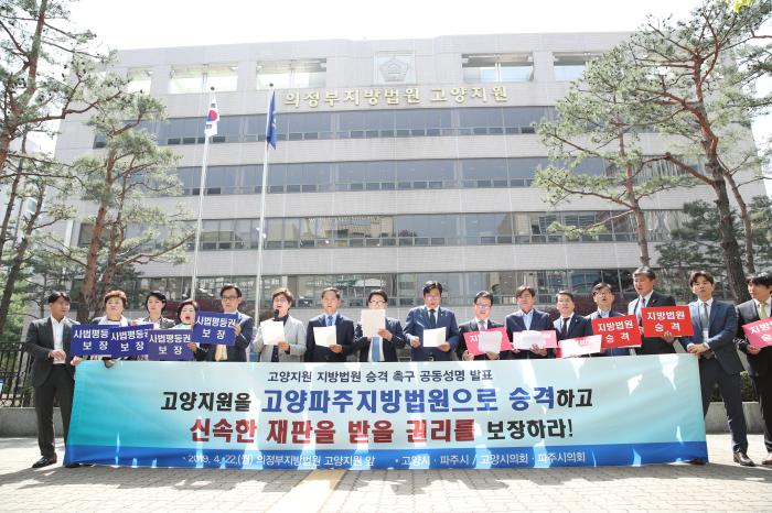 한편 고양시의회는 지방법원 승격 공동성명 발표에 앞서 지난 2018년 11월 제226회 제2차 정례회에서「의정부지방법원 고양지원, 고양파주지방법원 승격 촉구 결의안」을 의결하여 사법부 등에 전달한 바 있다.