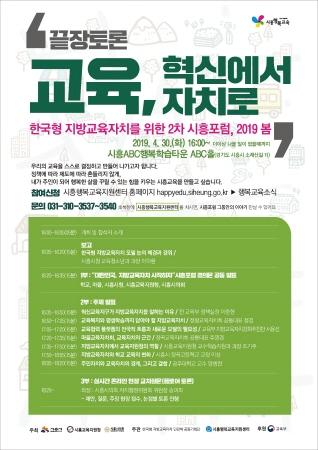시흥시는 오는 30일 시흥 ABC행복학습타운에서 시교육지원청, 시의회와 공동 주최로 ‘한국형 지방교육자치를 위한 시흥포럼 2019 봄’을 개최한다.