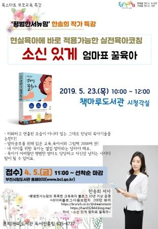 부천시 원미도서관은 가정의 달 5월을 맞이해 ‘소신 있게 엄마표 꿀육아’의 저자 한송희 작가를 초청해 부모교육 특강을 개최한다.