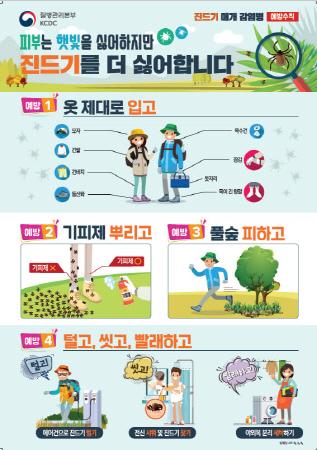 야외활동 및 작업 후 이 같은 증상 및 진드기에 물린 자국이 있는 경우 신속히 가까운 의료기관에 방문해 진료 및 처치를 받아야 한다.