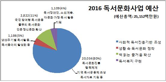 서울도서관이 문화체육관광부에 제출한 2016년 독서문화시행계획에 따르면 서울시 25개 자치구 산하 121개 공공도서관은 올해25,152백만원의 예산을 투입해 570여개 독서문화사업을 시행한다.