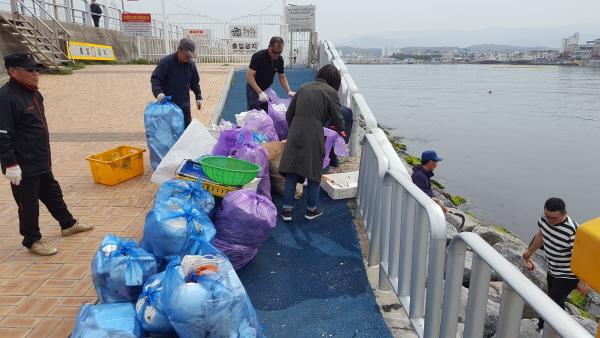 이번 행사는 주민, 어업인 협회·단체, 수협, 사회단체·기관, 공무원 등 28개 단체 500여명이 참여한 가운데 관광객이 많이 찾는 주문진항, 소돌 아들바위공원, 도깨비촬영지 등 구역별 산재한 각종 쓰레기, 폐로프, 폐스티로폼은 물론 잠수부를 동원해 방파제 내측과 항내 수중 침적 쓰레기 8톤을 수거했다.