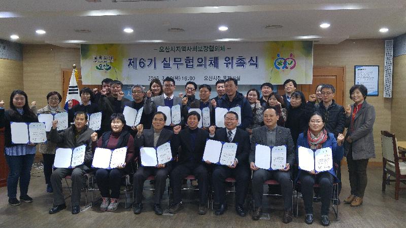 오산시(시장 곽상욱)에서는 지난 10일 시청 물향기실에서 지역의 사회보장 증진을 위해 제6기 지역사회보장협의체 확대 구성으로 실무협의체 위원 32명에게 위촉장을 전달했다.