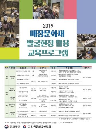 전국 각 지역의 매장문화재를 주제로 서울·경기, 대구·경북, 전남, 전북 등 4개 지역에서 총 11개의 다양한 교육 프로그램이 진행된다. 매장문화재로 조선의 건국 역사를 알아보는 ‘매장문화재가 들려주는 역사이야기 4’와 ‘종로 공평동 유적 이야기’, 읍성 견학 및 토기제작 체험 교육인 ‘청도읍성 가자’와 ‘조물락 조물락 토기교실’, 교육자료를 활용한 박물관 만들기 체험 교육인 , ‘압독으로 떠나는 여행’과 ‘나만의 박물관 만들기’, 유물모양 석고방향제·양초제작 등 실습형 교육인 ‘알아두면 쓸모있는 신비한 문화재’, 매장문화재 발굴현장 답사 및 세계유산 탐방 교육인 ‘안녕 고고학은 처음이지?’와 ‘전북인의 세계유산 짚어보기’ 등으로 구성된다.