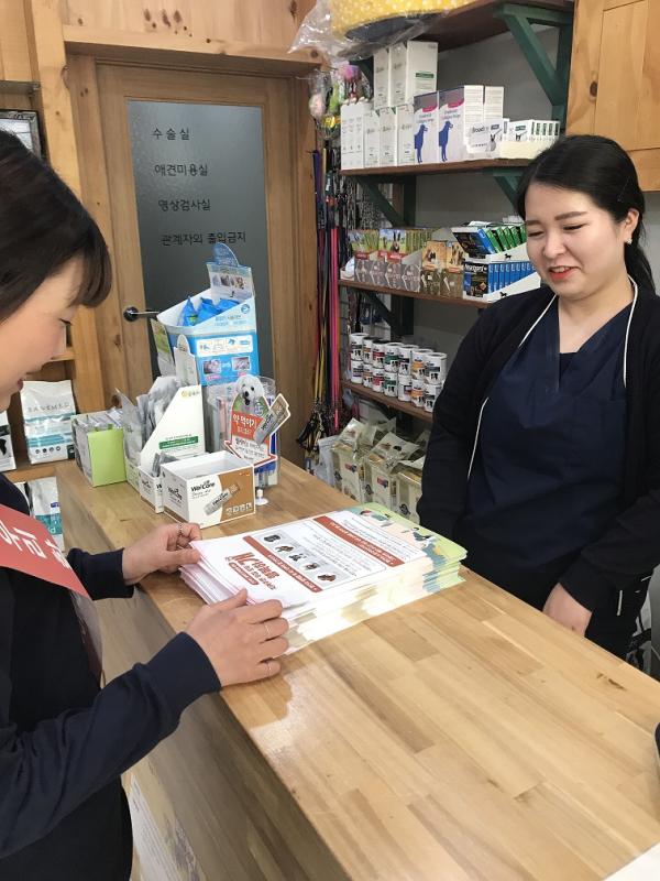 캠페인은 익산시 동물보호 담당 공무원과 동물명예감시원이 합동으로 찾아가는 현장 홍보반을 편성해 반려인이 자주 왕래하는 동물병원 및 애견? 등에서 실시했다.