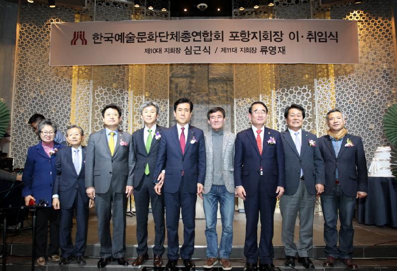지난 11일 티파니웨딩홀에서 한국예총 포항지회(이하 포항예총)의 제10‧11대 회장 이‧취임식이 열려 심근식 회장이 이임하고 류영재 회장이 취임했다. 이날 참석한 이강덕 포항시장은 이임하는 심근식 회장에게 감사패를 전달하며 그동안 지역예술인의 화합과 소통은 물론 지역문화예술 발전에 기여한 노고를 격려하고, 새로 취임한 류영재 회장을 비롯한 회장단에게 축하의 뜻을 전했다.