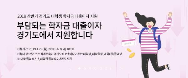 경기도는 민선7기 도지사 공약인 ‘대학생 학자금 대출이자 지원 확대’ 시행에 따라 오는 29일부터 6월 7일까지 2019년도 상반기 대학생 학자금 대출 이자 지원 신청 접수를 받는다고 25일 밝혔다.