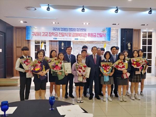 구리시 경제인들의 모임인 구리시경제인연합회는 지난 24일 관내 7개 고등학교 14명의 학생에게 각 50만원씩의 장학금을 전달하는 한편 갈매사회복지관에 200여만원의 후원금을 전달했다.