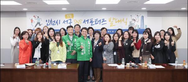 인천 서구가 트렌드에 맞춰 보다 다양하고 폭 넓은 SNS 홍보를 위해 최근 ‘제1기 SNS 서포터즈 발대식’을 개최했다고 밝혔다. 서포터즈 39명이 참여한 가운데 열린 이날 발대식은 서포터즈증 수여, 서포터즈 활동 가이드안내, 기념촬영 등으로 진행됐다.