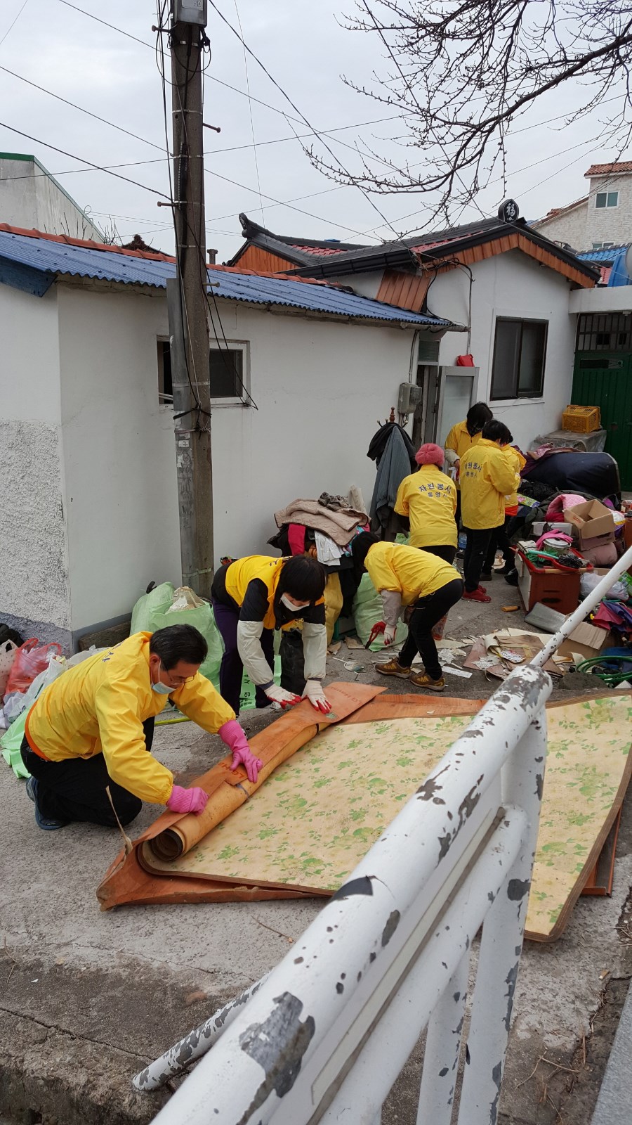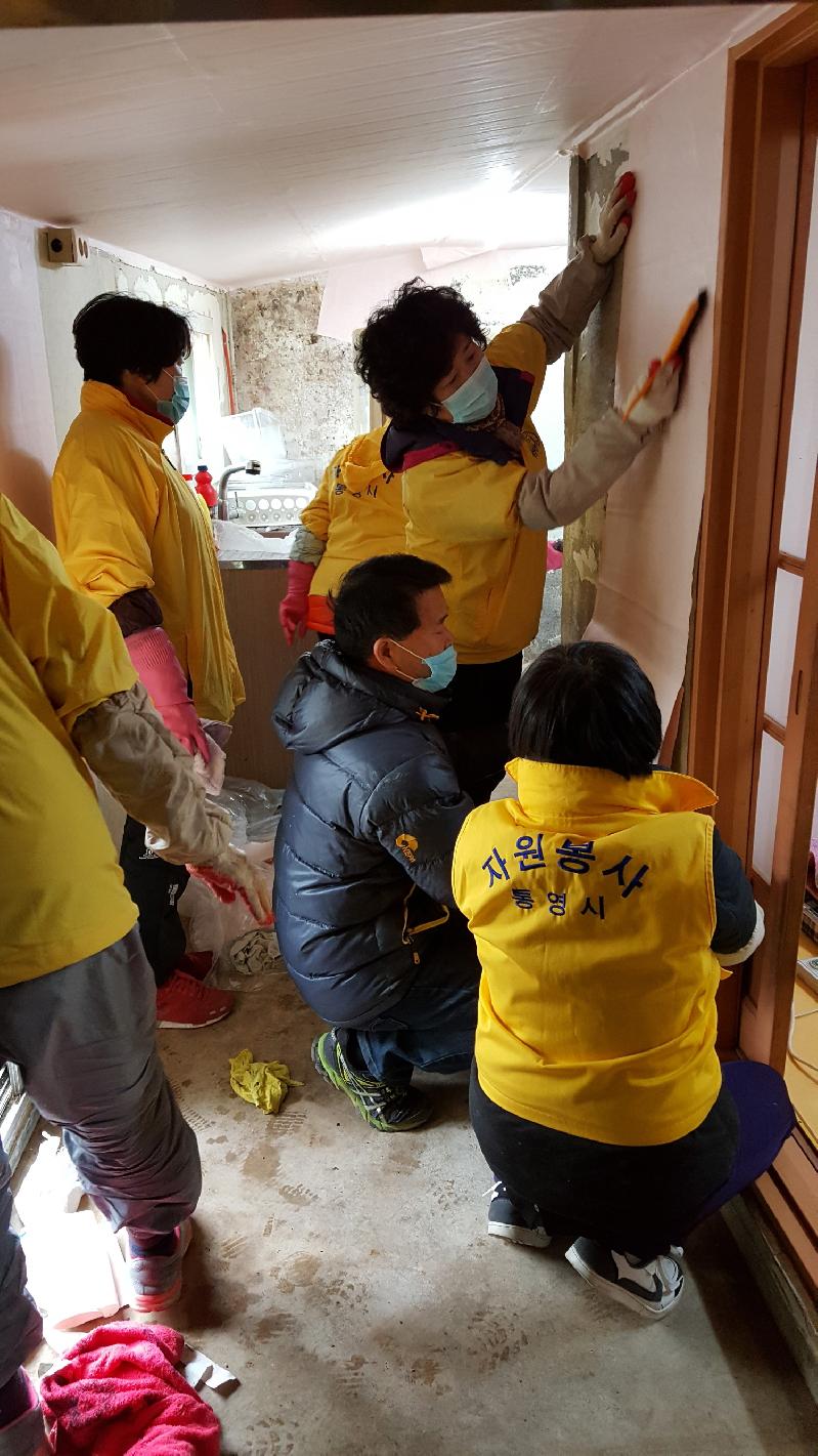 통영시 도천동 자원봉사회(회장 최주옥)에서는 지난 13일(일) 도천동에 거주하는 93세의 저소득 가구 어르신을 방문하여 2톤가량의 쓰레기를 정리한 후 노후한 벽지와 장판을 모두 교체하고 전기수리를 실시하는 등 주거환경개선사업을 펼쳤다.