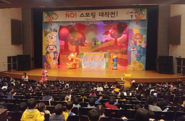 과천시보건소는 어린이집 및 유치원 아동에게 흡연과 음주의 위해성을 알리고자 흡연 및 음주 예방 인형극 ‘노 스모킹 대작전’을 25일 과천시민회관 대극장에서 두 차례 선보였다.