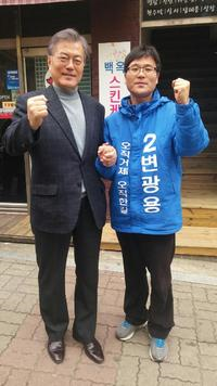 문재인 더불어민주당 전 대표가 지난 13일 일요일 오후 2시경 고향 거제 변광용 국회의원 예비후보를 찾아 승리의 결의를 함께 다졌다.