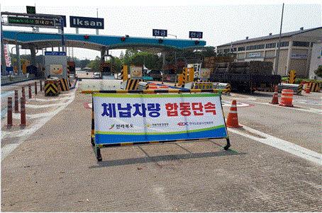 고속도로 IC 합동 단속은 3개 유관기관에서 9명이 투입되며 실시간 체납 차량 단속 시스템, 순찰차 등의 단속 장비를 이용해 익산IC에서 진행될 계획이다.