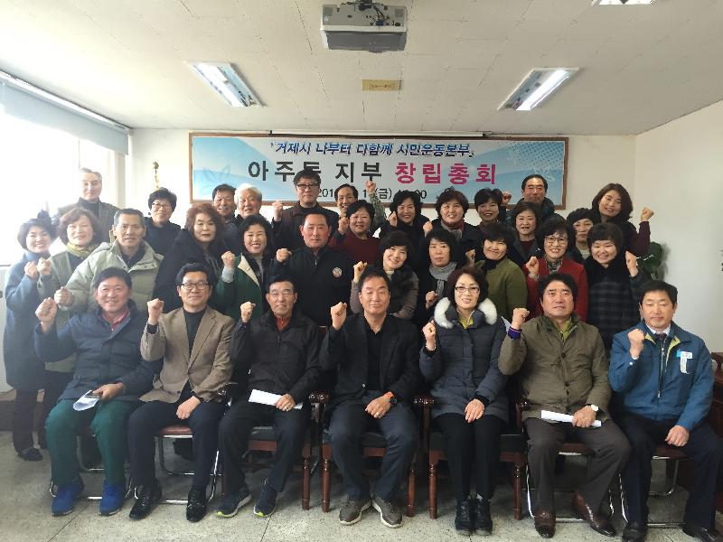 거제시 나부터 다함께 시민운동본부 아주동 지부는 지난 3월 11일 아주보건지소 회의실에서 관내 단체 회원, 일반 주민 등 가입 회원 50여명이 참석한 가운데 창립총회를 열었다.