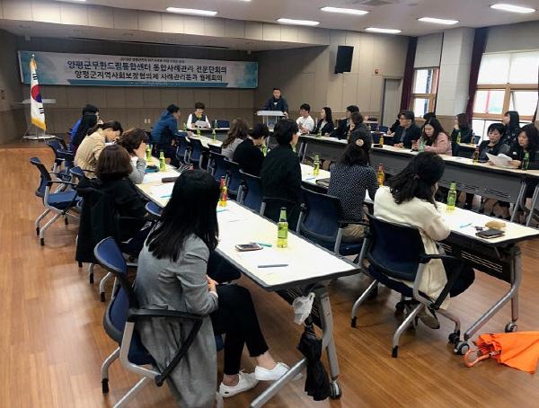 양평군은 지난 25일 양평군보훈회관 4층에서 복합적 문제로 어려움을 겪고 있는 위기이웃에 대한 통합사례회의를 개최했다. 회의에는 관내 23개 민관 사회복지 실무자 30여명과 함께 솔루션 사례회의 및 토의를 진행했다.