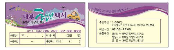 시는 노인 인구가 많은 대부동 흥성리, 행낭곡, 흘곶 3개 마을을 행복택시 시범마을로 지정하고 오는 5월 2일 개통식을 열고 공공형 택시를 운행한다고 밝혔다.