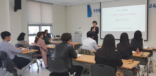 더불어 외부강사를 초빙해 ‘공직자의 격을 높이는 CS감성경영’이라는 주제로 감성소통의 방법을 통해 올바른 민원응대 기법에 대해 알아보는 친절교육도 함께 진행됐다.
